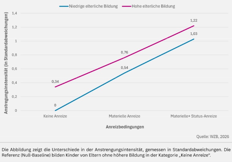Wie stark Kinder sich bei schulischen Aufgaben anstrengen, hängt auch mit ihrer sozialen Herkunft zusammen. Zu diesem Ergebnis kommt eine Studie des Wissenschaftszentrum Berlin für Sozialforschung (WZB), die im Fachjournal American Sociological Review veröffentlicht wurde. Erstmals wurde dabei nicht nur die Leistungsfähigkeit untersucht, sondern gezielt die Anstrengungsbereitschaft von Schülerinnen und Schülern.